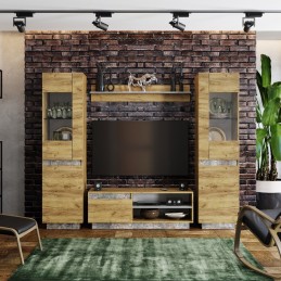 Модульная коллекция «Эмми» выполнена в одном из самых популярных и узнаваемых на сегодняшний день стиле "лофт". Сочетание двух трендовых декоров «крафт» с древесной текстурой с имитацией бетона ярко выделяет данную модель среди других. Функциональность и ультрасовременная эстетика, стильный дизайн, четкость и лаконичность линий – в этой гостиной есть всё, чтобы стать прекрасным дополнением и ярким акцентом в интерьере вашего дома. Стеклянные створки и стеклянные полки внутри пенала, навесной шкаф и широкая открытая полка придают гостиной визуальный эффект лёгкости и невесомости, подчеркивая изысканный вкус хозяина коллекции. Оригинальное конструктивное решение коллекции – отсутствие лицевой фурнитуры и интересный цветовой дуэт двух модных декоров, который можно смело использовать с элементами разных стилей. Пыли и грязи на нем совершенно незаметно, а это огромный плюс для домохозяек!