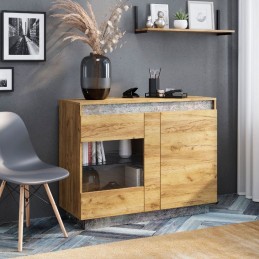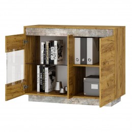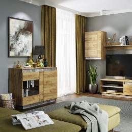 Модульная коллекция «Эмми» выполнена в одном из самых популярных и узнаваемых на сегодняшний день стиле "лофт". Сочетание двух трендовых декоров «Крафт» с древесной текстурой с имитацией бетона ярко выделяет данную модель среди других. Функциональность и ультрасовременная эстетика, стильный дизайн, четкость и лаконичность линий – в этой гостиной есть всё, чтобы стать прекрасным дополнением и ярким акцентом в интерьере вашего дома. Стеклянные створки и стеклянные полки внутри пенала, навесной шкаф и широкая открытая полка придают гостиной визуальный эффект лёгкости и невесомости, подчеркивая изысканный вкус хозяина коллекции. Оригинальное конструктивное решение коллекции – отсутствие лицевой фурнитуры и интересный цветовой дуэт двух модных декоров, который можно смело использовать с элементами разных стилей. Пыли и грязи на нем совершенно незаметно, а это огромный плюс для домохозяек!