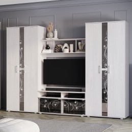 Гостиная "Флоренция" отличается утонченным дизайном и практичностью. Оттенок "белый ясень" в сочтании с растительным принтом придают помещению свежесть и легкость. Толщина кромки - 0,4 мм. Стекло 4 мм - тонированное, гнутое, пескоструйная обработка. Регулируемые пластиковые опоры высотой 20 мм. Стеклопетля с магнитом двойная флажковая. Хромированная труба d-25 мм. Максимальная нагрузка на полку - 10 кг. Стразы Svarovski.