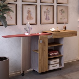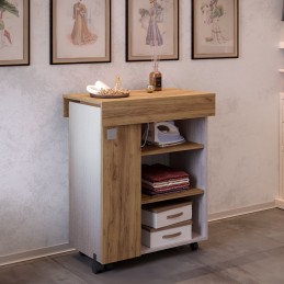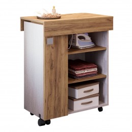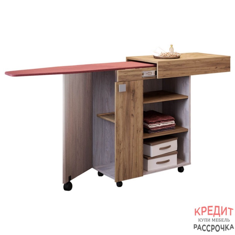 Невероятно практичная тумба "Тео"! Все дело в ее многофункциональности, ведь при необходимости модель с легкостью трансформируется в гладильную доску. Изделие дополнено полками, на которых можно хранить утюг и необходимые вещи, а также колесиками для большей мобильности. Тумба точно выручит владельцев малогабаритных квартир.
