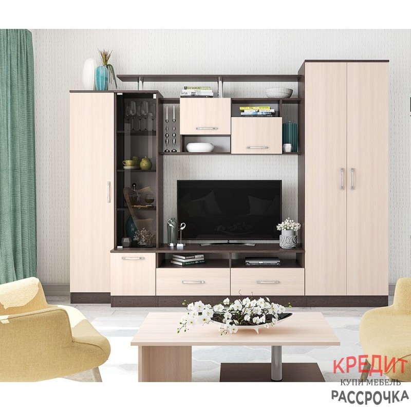 ГостинаяОскар 5обладает отличной функциональностью и комфортом при ежедневной эксплуатации. Эти необходимые свойства обеспечивает наличие нескольких вместительных секций, позволяющих с удобством разместить все нужные вещи. Продуманное цветовое решение мебели гарантирует ее совместимость с практически любым современным интерьером.