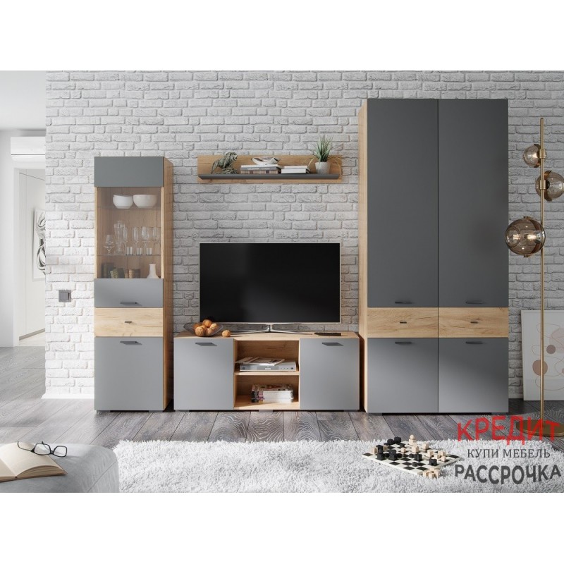 Модульная коллекция Дублин - ультрастильное решение для организации пространства Вашей гостиной. Модули представлены модным цветовым сочетанием, гикори рокфорда и серого графита, который добавляет обстановке тепла и гармонии. Такая мебель будет отлично смотреться в любом современном интерьере. Кроме визуальной привлекательности, гостиная Дублин достаточно функциональна. Комбинируя элементы между собой, Вы сможете не только с комфортом обыграть ТВ-зону, но и расположить одежду,домашнюю утварь, посуду, предметы декора. Материал: ЛДСП Цвет: Гикори рокфорд/Графит серый