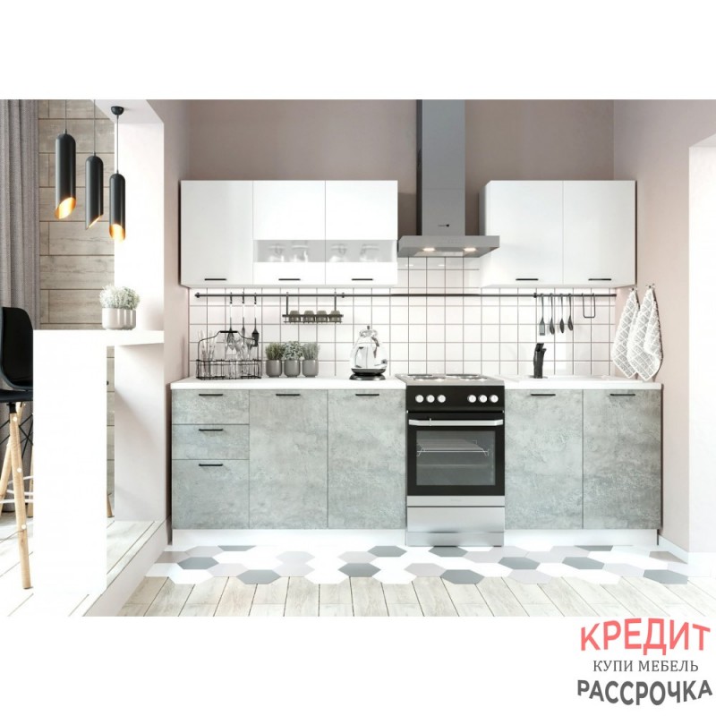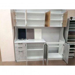 №1) Корпус – Белый (ЛДСП), Верхние фасады - ЛДСП Белый бриллиант, Нижние фасады - ЛДСП Цемент