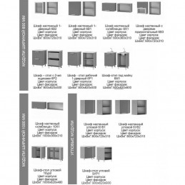 нижние секции – Высота 82 см х Глубина шкафов 50 см, Глубина 50 см (со столешницей 60 см).