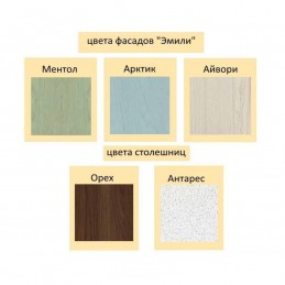 Декор. Декор "Ментол" — это настроение Вашего утра фисташкового цвета и душевные чаепития вечерами у распахнутого окна в кругу близких людей. Это свежее дыхание морского бриза, вдохновляющее творить. Декор "Крем-сатин" — тепло солнечного дня, затаившееся в кремовых пудровых оттенках кухонного гарнитура Эмили, согревающего душу и наполняющего уютом Вашу кухню в пасмурные дни. Декор "Арктик" — легкость и ненавязчивость средиземноморского побережья, нашедшее отражение у Вас на кухне, романтика полуденной сиесты и пряные ароматы любимых блюд в пастельно-лазурном цвете кухни «Эмили».