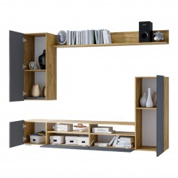 Стильный вариант гостиной "Диаманд" будет прекрасно смотреться в любом интерьере. Фасады без ручек и лишнего декора выглядят современно. На верхней открытой полке вы сможете разместить свои любимые сувениры или фотографии.