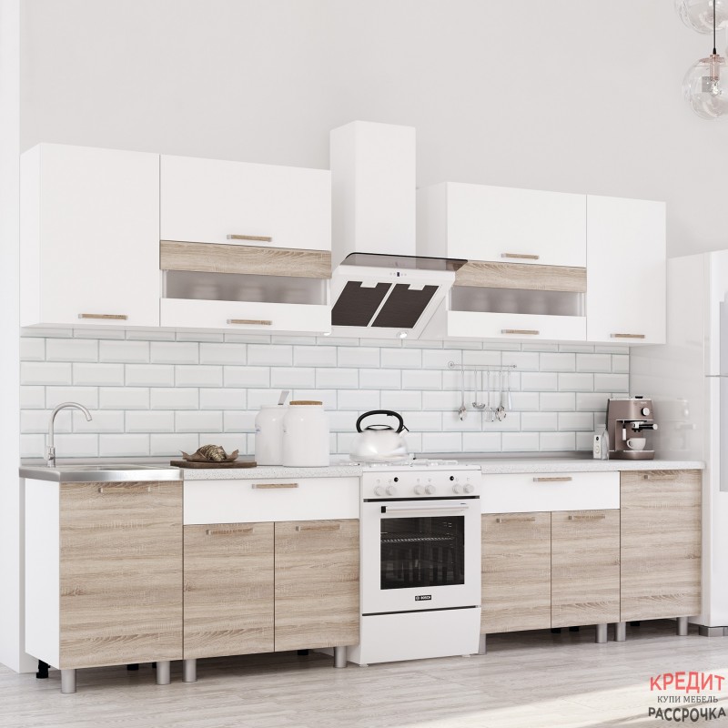 Стильная современная кухня «Айсбери» 2,4 м пропитана атмосферой душевного тепла и солнечного света. Классическое сочетание белого цвета с древесной фактурой - лучшее решение для Вашей кухни!