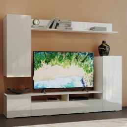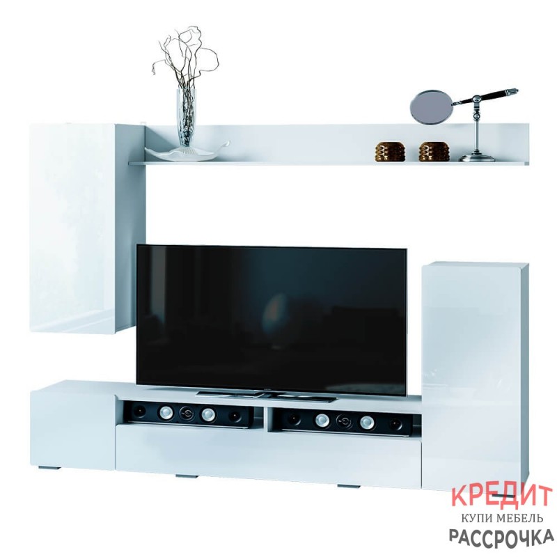 Стильный вариант гостиной "Диаманд" будет прекрасно смотреться в любом интерьере. Белые фасады без ручек и лишнего декора выглядят современно. На верхней открытой полке вы сможете разместить свои любимые сувениры или фотографии.