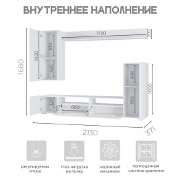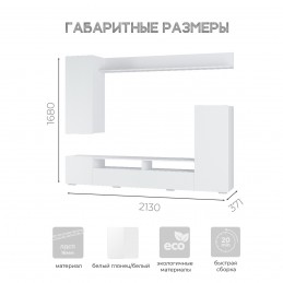 Гостиная "Диаманд" - идеальное решение для гостиной в современном стиле. Сдержанный дизайн позволит воплотить любую задумку в интерьере. Благодаря отсутствию лицевой фурнитуры гостиная смотрится более выразительно. Створки открываются путем захвата фасада рукой сверху или снизу. На верхней открытой полке вы сможете разместить свои любимые сувениры или фотографии.