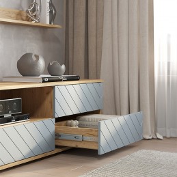 Гостиная «Камелия» - это комплексное решение для уютной гостиной. Разнообразие вместительных зон для хранения позволяет обустроить комфортную зону отдыха. Лаконичный дизайн и нежные оттенки фасадов «шарли пинк» и «шарли бриз» создают атмосферу расслабленности и гармонии. Фрезеровка на фасадах в виде геометрических узоров добавляет динамику в пространство и оживляет его.