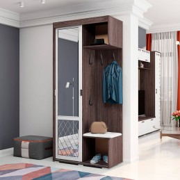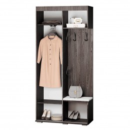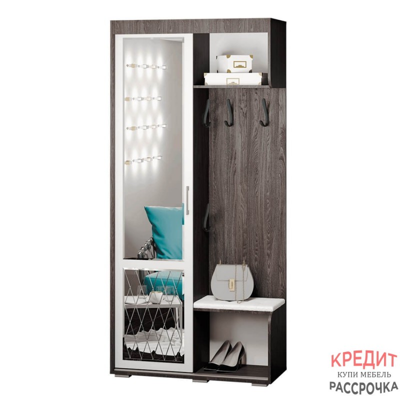 Элегантная прихожая "Варда" поможет разместить все необходимые вещи. Модель очень лаконична и не занимает много пространства. Дверца шкафа, за которой расположились полки и штанга для верхней одежды, оснащена двумя зеркалами. Прихожая имеет открытые крючки, нишу для обуви и небольшой пуф, обтянутый экокожей. Цветовое решение изделия позволит ему стать частью интерьера любого стиля.