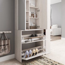 Прихожая "Россо" - модель, созданная для тех, кто ценит многофункциональность. "Россо" объединяет в себе все необходимые элементы прихожей: светлый цвет корпуса органично дополняет фасад с фотопечатью, имитирующей спил дерева.