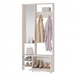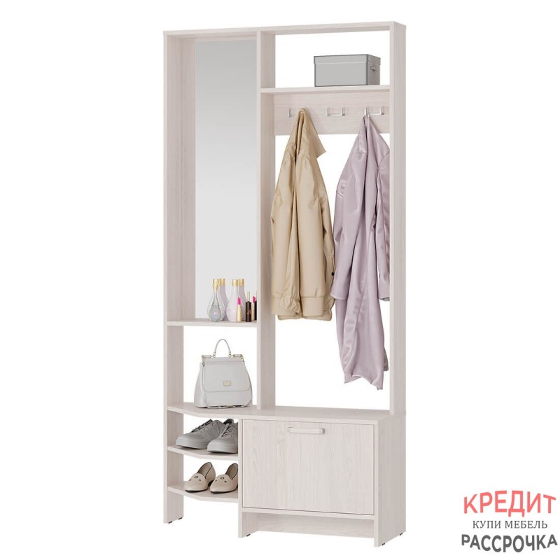 Компактная прихожая "Тео" – готовое решение для современной малогабаритной прихожей. Здесь есть все составляющие – зеркало с полкой для разных полезных мелочей, верхняя полка для головных уборов, просторная зона с крючками для верхней одежды, нижние открытые и закрытые полки, в которых можно хранить сезонную обувь. Регулируемые опоры позволяют установить прихожую на любой неровной поверхности.