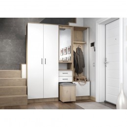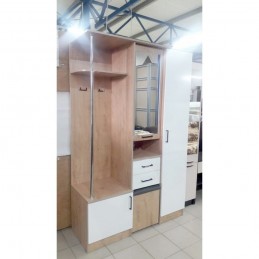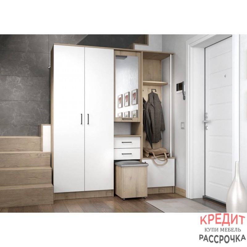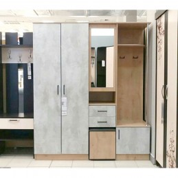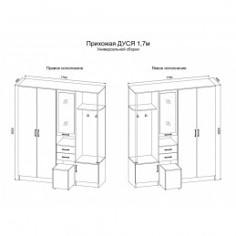 Гарнитур можно подобрать в соответствии с пожеланиями и предпочтениями потребителей. В комплекте помимо самой прихожей также поставляется и пуфик. Прихожая «Дуся» станет идеальным решением для небольших по площади помещений, ведь модульные элементы позволят расставить шкафчики для любой планировки.