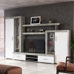 Гостиная "Инстайл" является частью одноименной модульной коллекции, все предметы которой идеально сочетаются между собой. Цвет "бетон" корпуса в комбинации с белыми матовыми фасадами и вставками из стекла придают гостиной "Инстайл" легкости. Два распашных шкафа, в один из которого встроена выдвижная штанга (евроштанга), позволят разместить личные вещи и предметы гардероба. На нескольких открытых полках вы сможете хранить сувениры, фотографии или предметы декора.