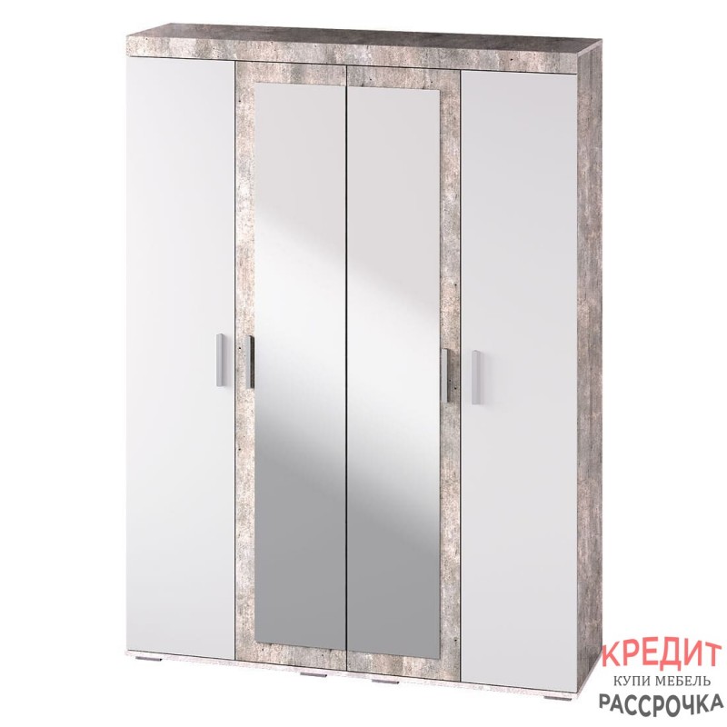 Современный четырёхстворчатый шкаф "Инстайл" выполнен в стиле одноименной модульной коллекции мебели. Модель состоит из четырех дверок, две из которых – зеркальные. Изделие выполнено в комбинации белого и цвета "бетон". Шкаф состоит из двух отделений со штангами, а также верхних и нижних полок для вещей. По желанию Вы можете заменить штанги полками ПЛ-08, которые приобретаются отдельно.