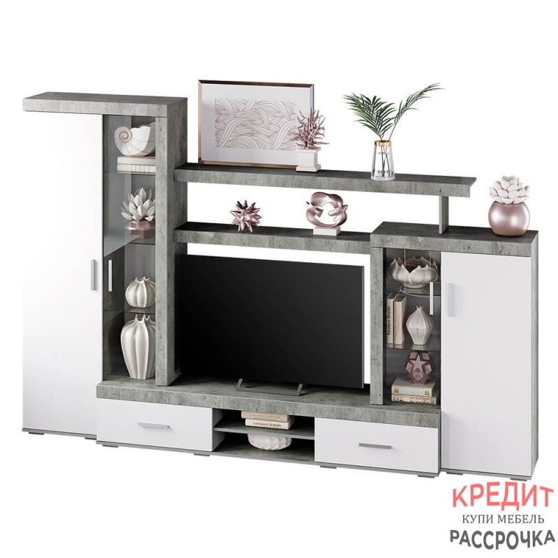 Гостиная "Инстайл" является частью одноименной модульной коллекции, все предметы которой идеально сочетаются между собой. Цвет "бетон" корпуса в комбинации с белыми матовыми фасадами и вставками из стекла придают гостиной "Инстайл" легкости. Два распашных шкафа, в один из которого встроена выдвижная штанга (евроштанга), позволят разместить личные вещи и предметы гардероба. На нескольких открытых полках вы сможете хранить сувениры, фотографии или предметы декора.
