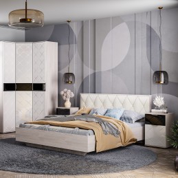 Модульная спальня «Кимберли» - это современная элегантная мебель с остроконечной фрезеровкой фасадов: