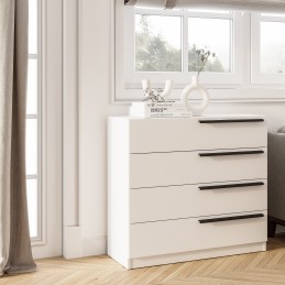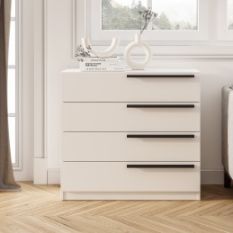 Комод «Айрон» — вместительный комод с четырьмя вместительными ящиками — универсальное решение, которое подойдёт и для спальни, и для домашнего кабинета, и для гостиной. Эргономичные черные ручки контрастного оттенка делают эту модель более изящной. Комод идеально подходит для хранения белья, одежды, аксессуаров, важных документов, украшений и мелочей. Верхнюю крышку можно использовать как дополнительную полочку для лампы.