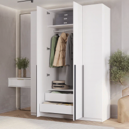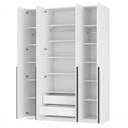 Данная модель шкафа идёт в комплекте с 3 штангами. По желанию Вы можете дополнительно заказать полки и ящики. Ящики и полки в комплект не входят.