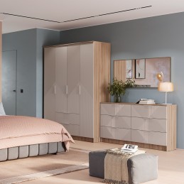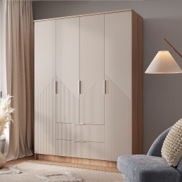 Шкаф четырёхстворчатый (ШК-11) имеет пять удобных полок по бокам для хранения одежды. Помимо этого, по центру расположены две вместительные секции для хранения ежедневной одежды. В нижней части шкафу находятся два вместительных ящика — это идеальное место для хранения обуви или постельного белья.
