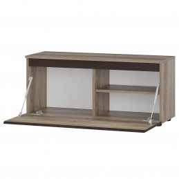 Тумба «Энигма» — лаконичное и функциональное решение для спальни. Пространство за откидной дверцей разделено на два отсека: одну большую и две компактных полки. Модель также подойдёт для гостиной или домашнего офиса.