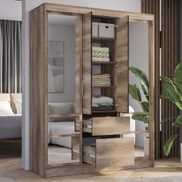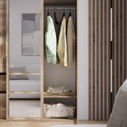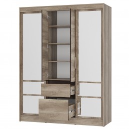 Шкаф-купе «Энигма» — это оптимальное сочетание габаритов и функционала. Модель не занимает много места, но позволяет хранить большой гардероб. Шкаф состоит из одной зоны с полками, двух зон со штангой для вертикального хранения и двух выдвижных ящиков.