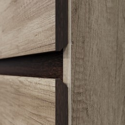«Дуб каньон» кромится в цвет корпуса. Фасадные части цвета «дуб каньон» кромятся цветом «венге». Интегрированный срез на фасаде.