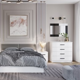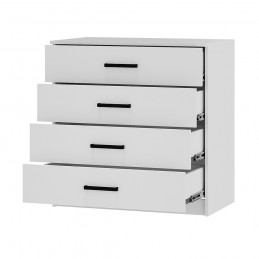 Комод «Фьюжн», выполненный в минималистичном стиле, станет отличным дополнением к интерьеру спальни или гостиной. Четыре вместительных ящика подойдут для хранения белья, одежды и различных мелочей. Эргономичные и стильные черные ручки удобны для повседневного использования. На открытой части комода можно разместить лампу и важные мелочи.