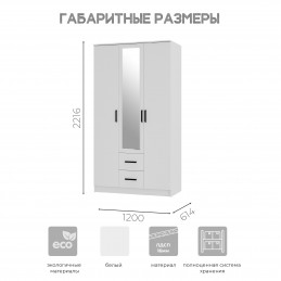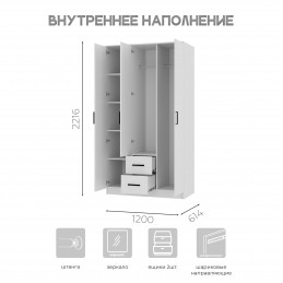 Шкаф «Фьюжн» ШК-09 с тремя отсеками для хранения – простое и многофункциональное решение для современного жилища. Модель оснащена двумя вертикальными зонами для хранения со штангами, а также отсеком с пятью полками и двумя выдвижными ящиками.