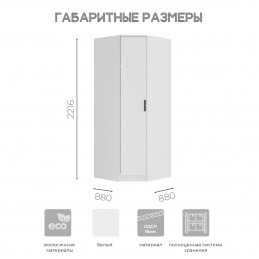 Угловой шкаф «Фьюжн» - идеальный выбор для тех, кто привык разумно использовать пространство. Вместительная модель оснащена зоной со штангой для вертикального хранения, просторными полками и большим верхним пространством, на котором можно разместить несезонную одежду.