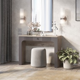 Туалетный столик «Кассандра» станет эстетичным штрихом вашего интерьера. В компактном ящике поместится вся необходимая косметика и украшения, а на верхней полке можно разместить зеркало и небольшой светильник.