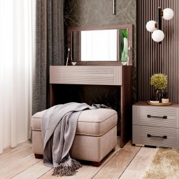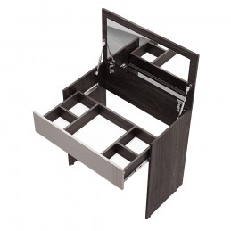 Настоящим украшением спальни станет уникальный косметический столик «Моника» с выдвижным ящиком на шариковых направляющих и откидной крышкой столешницы, оборудованной зеркалом с еврокромкой.