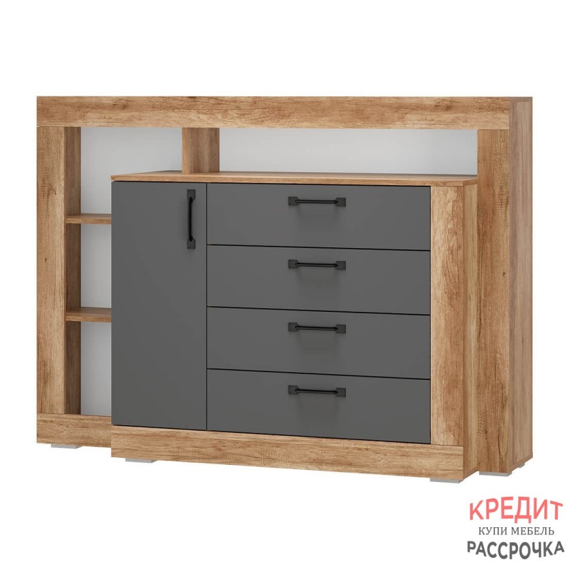 Комод многофункциональный "Прима" КМ-17 - удобная система хранения для одежды, постельных принадлежностей или других хозяйственных аксессуаров. Все необходимые вещи можно расположить на полках за распашной створкой, а также в трёх вместительных выдвижных ящиках на роликовых направляющих, которые обеспечивают легкую и бесшумную эксплуатацию модели. В открытых нишах можно разместить игрушки, книги, наборы для творчества и много других вещей.