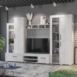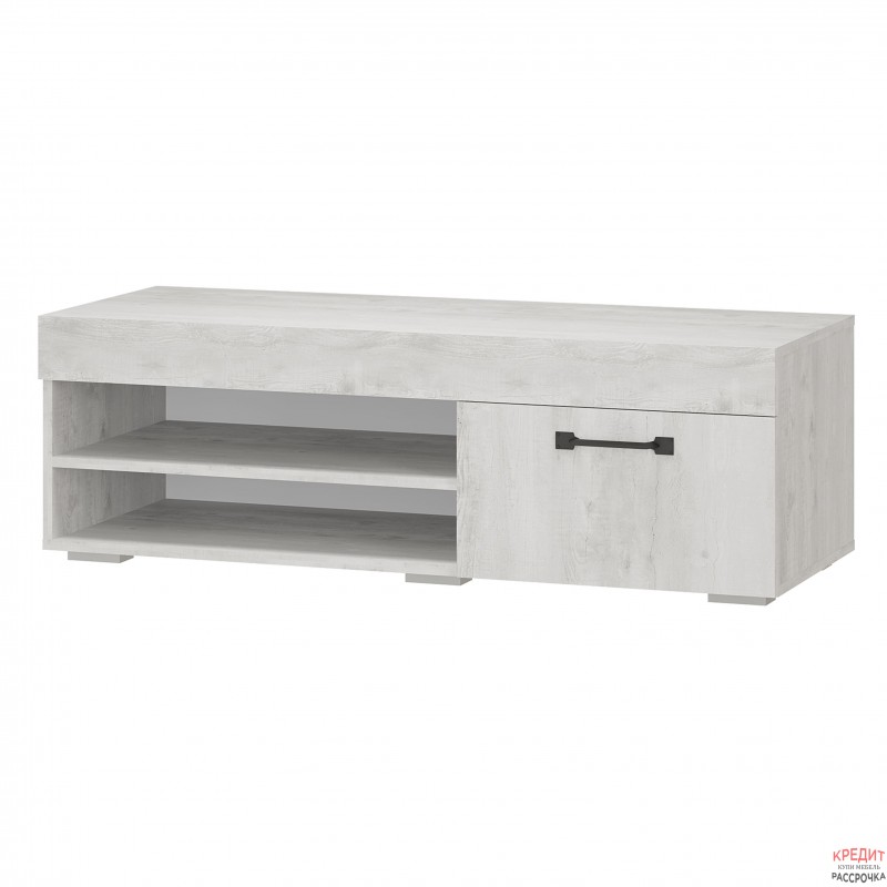 Тумба под ТВ "Прима" ТБ-08 бетон пайн светлый - универсальная модель для современной гостиной, которую отличает минималистичный дизайн и оптимальное сочетание открытых и закрытой зон хранения. Нижняя откидная створка на кронштейне.