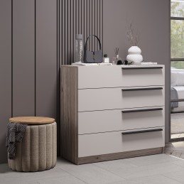 Комод "Урбан" – это универсальная модель, которая подойдет для спальни, домашнего офиса или гостиной. Четыре вместительных ящика станут идеальным дополнительным пространством для хранения белья, одежды, документов и мелочей. Эргономичные ручки из прочного пластика обеспечат удобное ежедневное использование. Устойчивые подпятники защитят напольное покрытие и позволят без труда проводить влажную уборку.