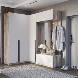 Угловой шкаф «Урбан» состоит из отделения с хромированной штангой для плечиков, а также верхние и нижние ниши.