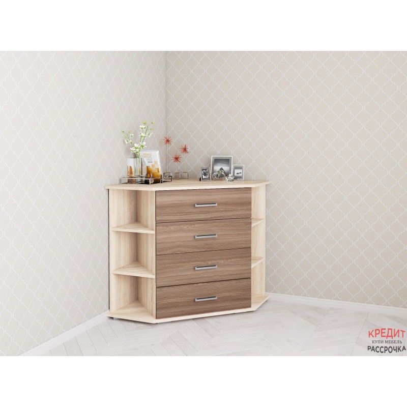 — Угловой комод с открытыми полками и выдвижными ящиками