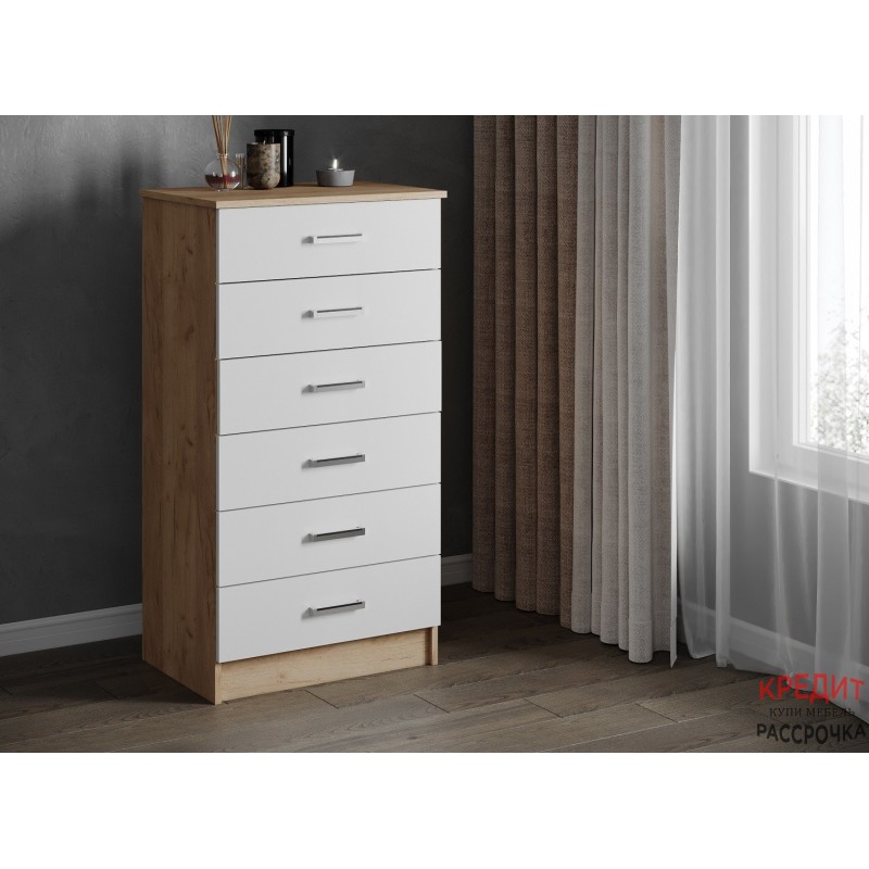 Комод высокий Катрин 4, дуб крафт золотой/белый