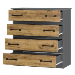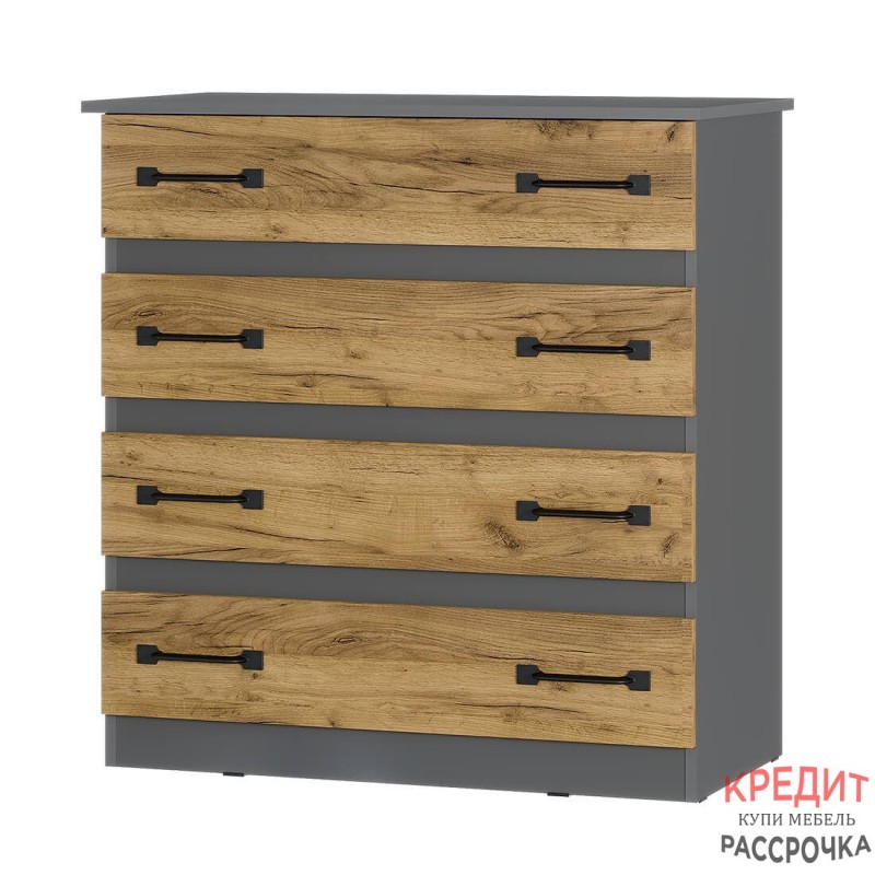 Комод «Лофт» — вместительный комод с четырьмя вместительными ящиками — универсальное решение, которое подойдёт и для спальни, и для домашнего кабинета, и для гостиной. Данная модель идеально подходит для хранения белья, одежды, аксессуаров, важных документов, украшений и мелочей. Верхнюю крышку можно использовать как дополнительную полочку для лампы.