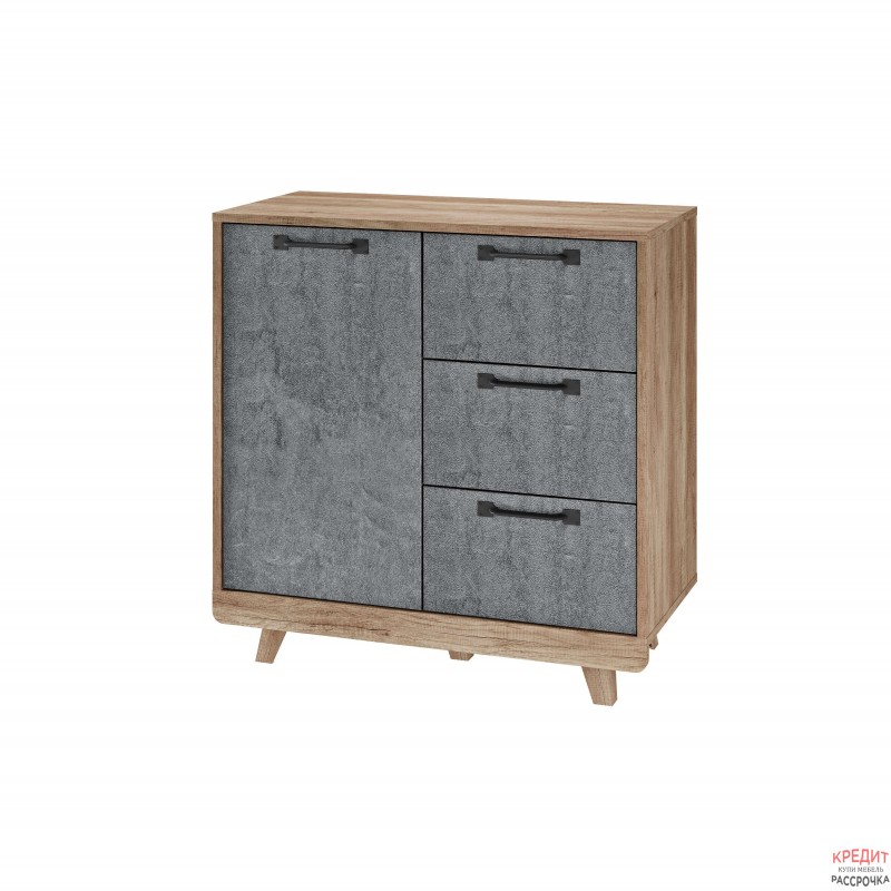Комод (КМ-12) выдержан в общей стилистике «Мегаполис» и состоит из одного распашного и трёх выдвижных ящиков на шариковых направляющих с удобной системой хранения. Полезное пространство распашного ящика разделено полкой.