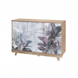 Комод (КМ-15) выдержан в общей стилистике «Мегаполис» и состоит из двух распашных по бокам и трёх выдвижных по центру вместительных ящиков на шариковых направляющих с удобной системой хранения. Полезное пространство распашных ящиков разделены полками.