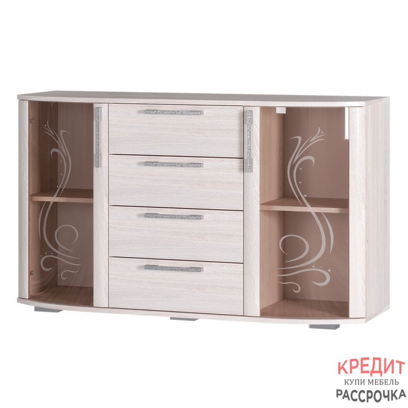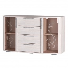 Комод «Флорида» - современный стильный комод, который займёт достойное место как в спальной комнате, так и в гостиной Вашего дома. Фасад модели представляет собой прекрасный тандем стеклянных и деревянных элементов. Светлый цвет корпуса и фасада в комбинации с прозрачными стеклостворками делают модель лёгкой, визуально увеличивая пространство комнаты. Вместительные глубокие ящики на роликовых направляющих обеспечивают легкую, бесшумную и долговечную эксплуатацию моделей. На просторной столешнице комода можно разместить телевизор, элементы декора или домашние растения.