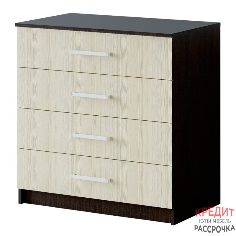 Модель комода "Фиеста" позволит разместить ваши любимые вещи благодаря четырем выдвижным ящикам. Изделие будет идеально смотреться в любом интерьере и любой комнате, ведь оно выполнено из ЛДСП классических цветов "венге" и "лоредо". Пользоваться комодом очень удобно за счет эргономичных ручек.