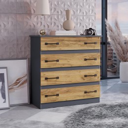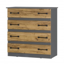 Комод «Лофт» — вместительный комод с четырьмя вместительными ящиками — универсальное решение, которое подойдёт и для спальни, и для домашнего кабинета, и для гостиной. Данная модель идеально подходит для хранения белья, одежды, аксессуаров, важных документов, украшений и мелочей. Верхнюю крышку можно использовать как дополнительную полочку для лампы.
