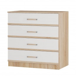 Комод является частью модульной коллекции "Сакура". Его можно поставить как в прихожую, так и в спальню, детскую или гостиную. Модель состоит из четырех выдвижных ящиков, каждый из которых имеет светлый фасад и эргономичную ручку с хромированной отделкой.
