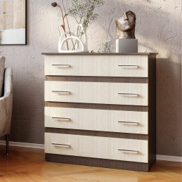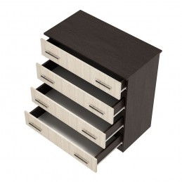 Классическая модель комода «Стандарт № 6» выполнена из ЛДСП высокого качества. Комод состоит из четырех выдвижных ящиков, на каждом из которых расположены две ручки.