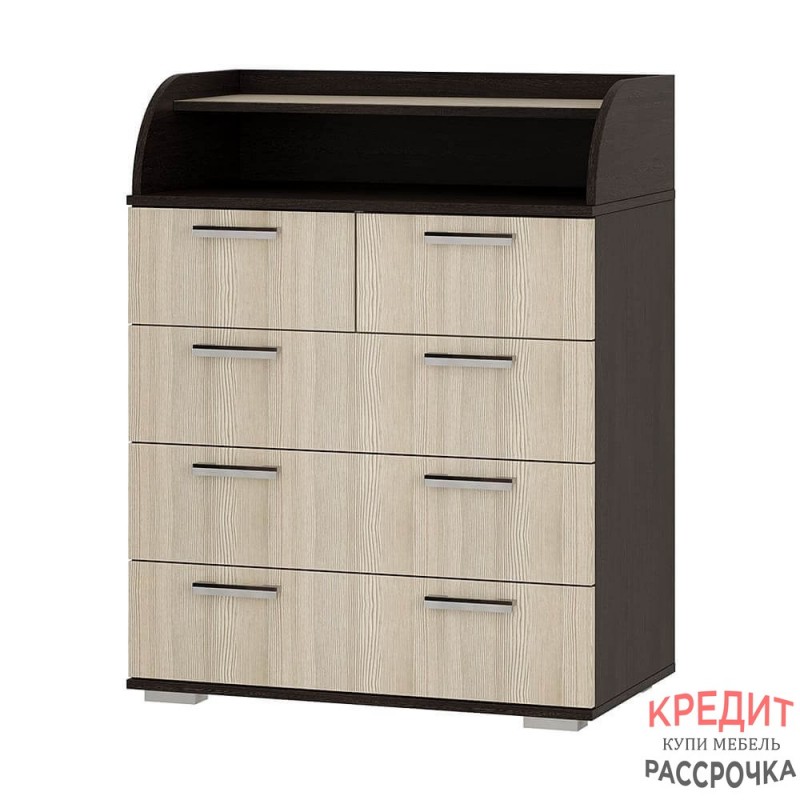 Комод «Стандарт № 1» отличается своей практичностью. Наряду с выдвижными ящиками, он имеет открытую полку, расположенную сверху, значит у вас появится дополнительное место для хранения вещей. Для облегчения открывания нижние выдвижные ящики оснащены одновременно двумя ручками геометрической формы, верхний – разделен на две секции для более удобного хранения.