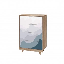 Особый шарм комодам «Мегаполис» придают трендовые цветовые решения фасадов, которые идеально вписываются практически в любой стиль. Оригинальная фрезеровка и эксклюзивная фотопечать выглядит очень эффектно и эксклюзивно. Пыли и грязи на таких поверхностях совершенно не видно, а это огромный плюс для домохозяек! Комод (КМ-02) состоит из четырёх выдвижных ящиков на шариковых направляющих для хранения одежды, пастельного белья и других хозяйственных аксессуаров. Цветовая палитра фасадов комодов впервые разбавлена фасадами с качественной фотопечатью.
