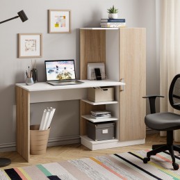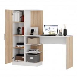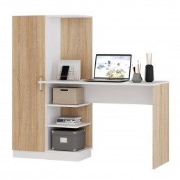 Обустроить место для работы или учебы можно с помощью компьютерного стола "Бейсик". Модель сделана из ЛДСП двух цветов – сонома и белого. Благодаря такому цветовому решению, изделие будет выигрышно смотреться в любом интерьере. Конструкция модели представляет собой вместительную столешницу, зону с открытыми полками, а также небольшой пенал с распашной дверцей, в котором можно хранить необходимые для занятий вещи.